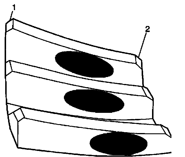 1. Inspect the drive side (2) of the ring gear teeth (concave) and the coast side (1) of the ring gear teeth (convex).