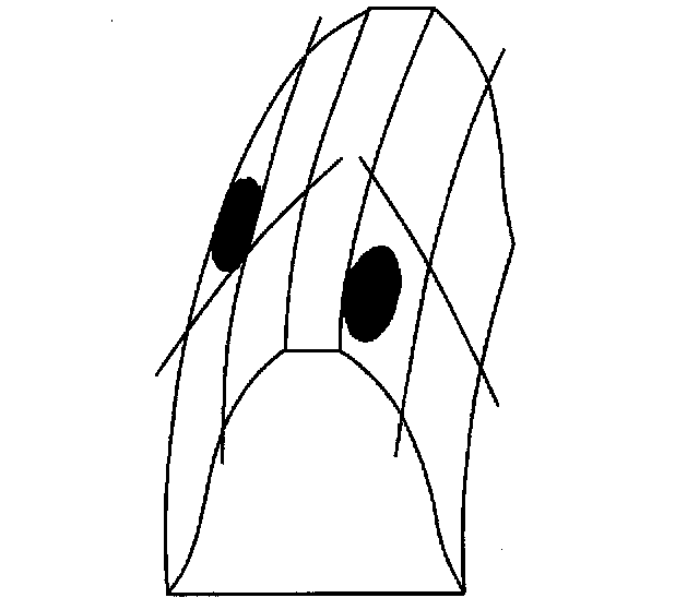 ^ A coast pattern from heel (2) to toe (1) has a normal drive contact.