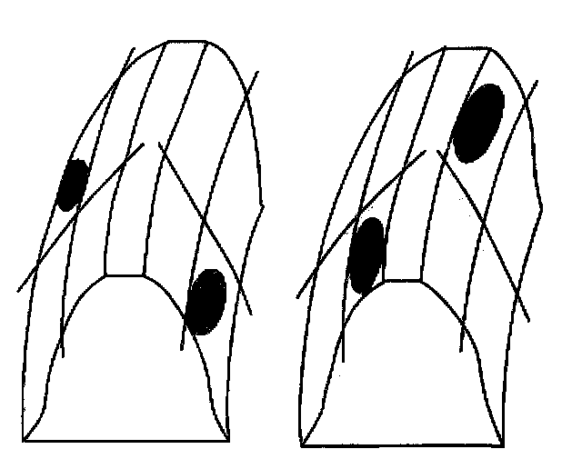 ^ A typical drive pattern from heel (2) to toe (1) has a normal drive contact.