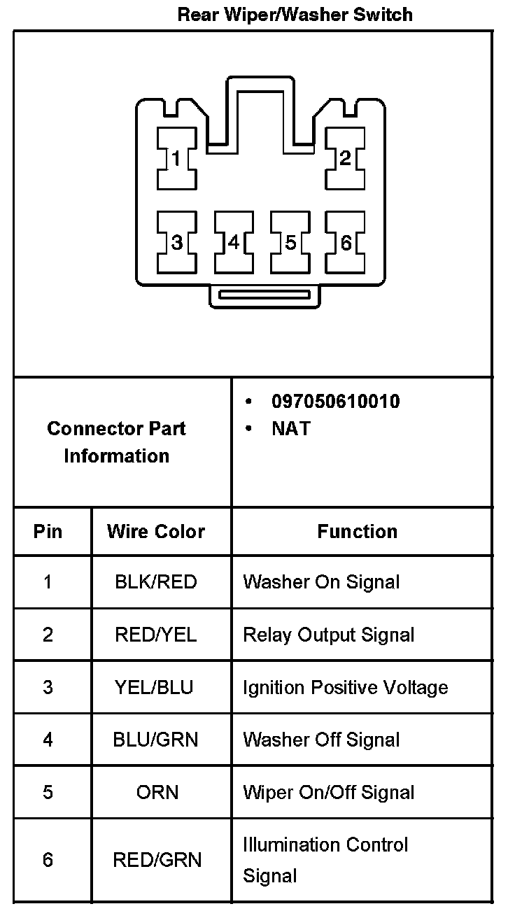Rear Wiper/Washer Switch: