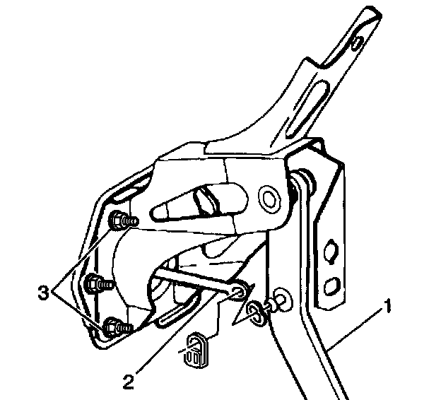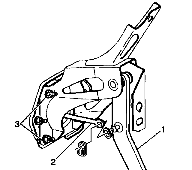 3. Install the brake pedal assembly with the brace (3) to the vehicle.