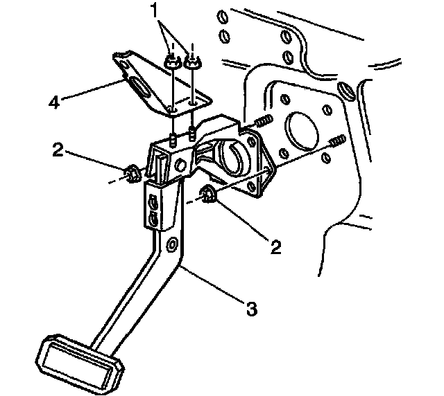 9. Remove the brake pedal assembly with the bracket (3).