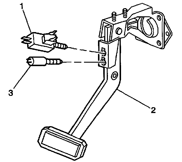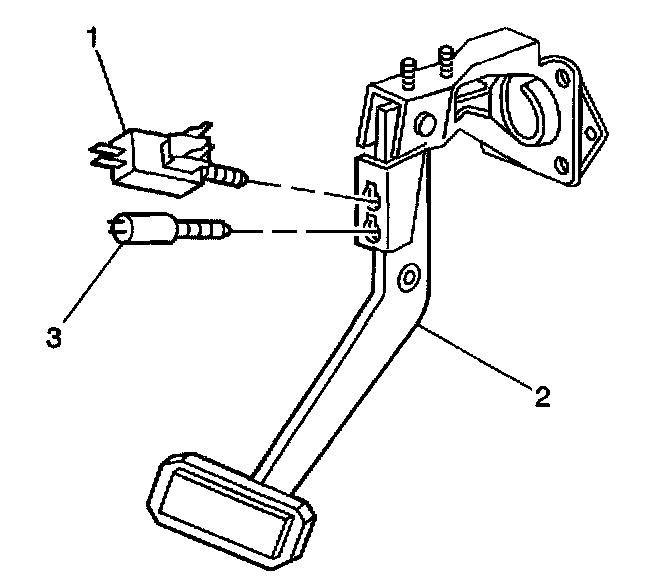 11. Remove the cruise control release switch (3) and the stop lamp switch (1) from the brake pedal assembly.