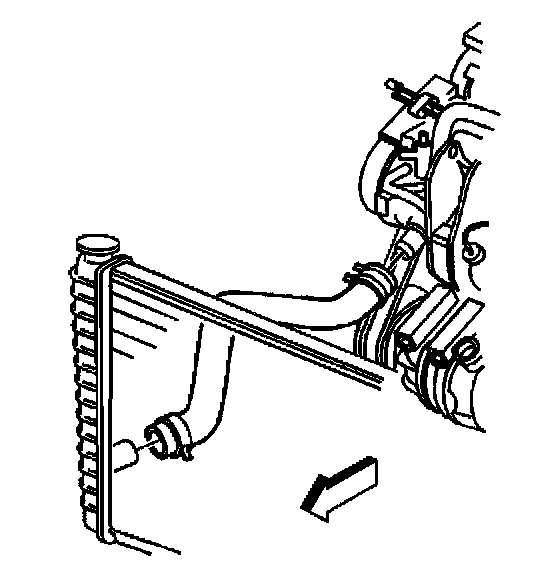 15. Release tension from the hose clamp at the radiator using the J 38185.