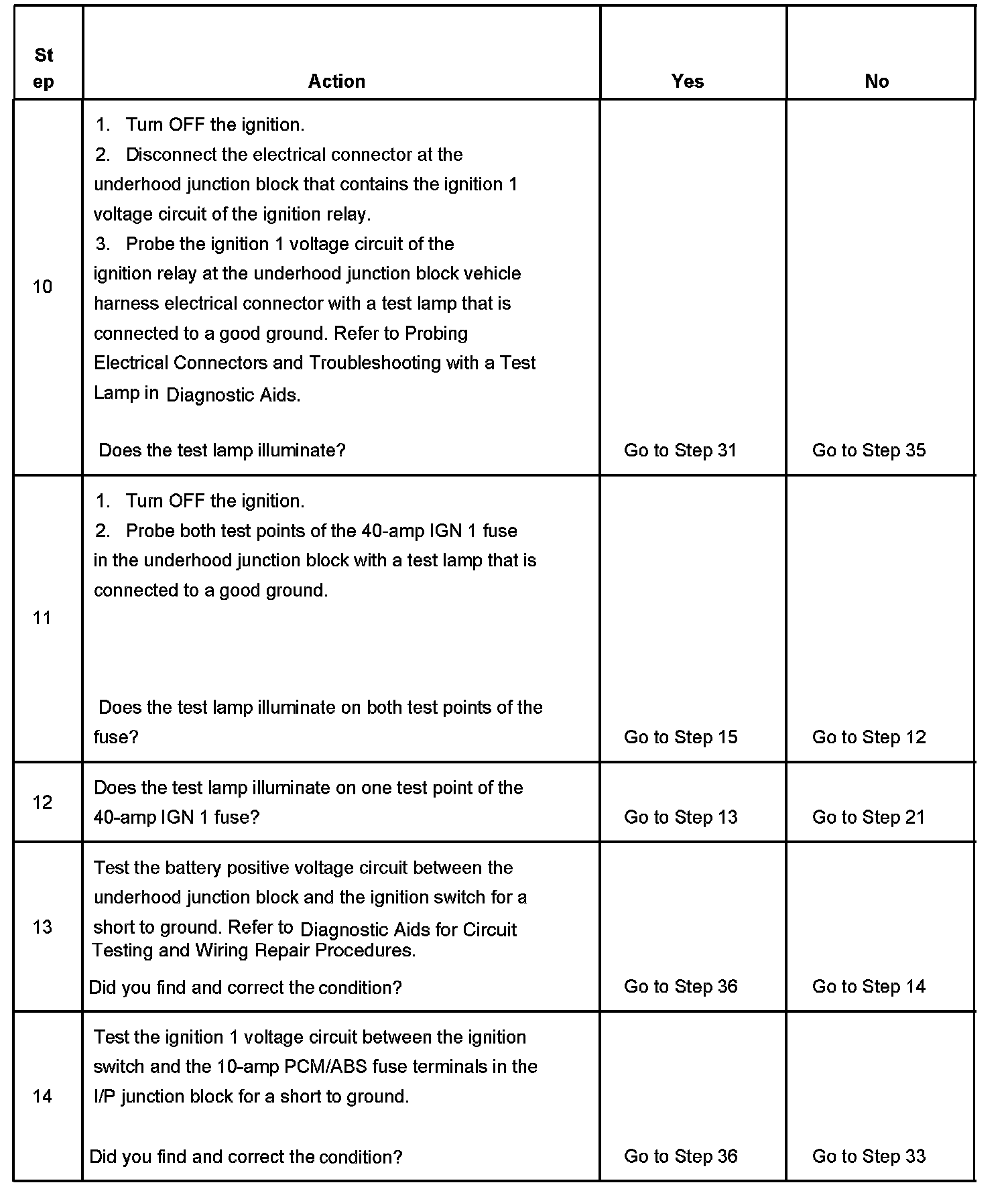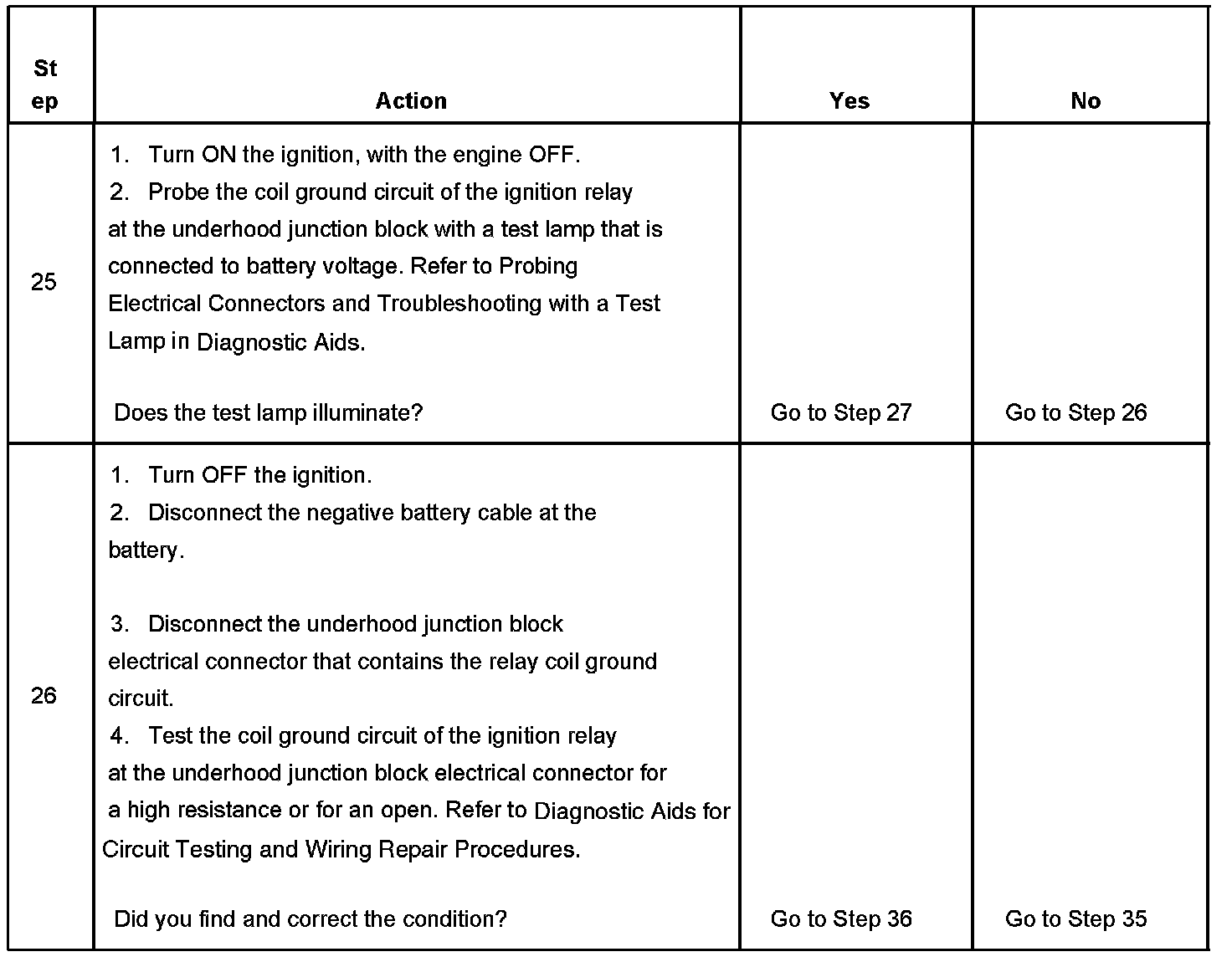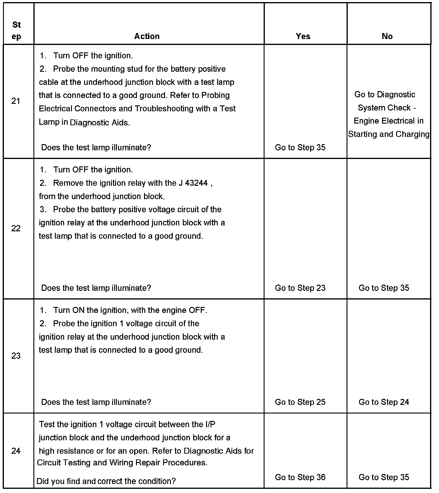 The ignition relay table assumes that the vehicle battery is fully charged. Refer to Battery Inspection/Test in Starting and Charging. Battery Inspection/Test
