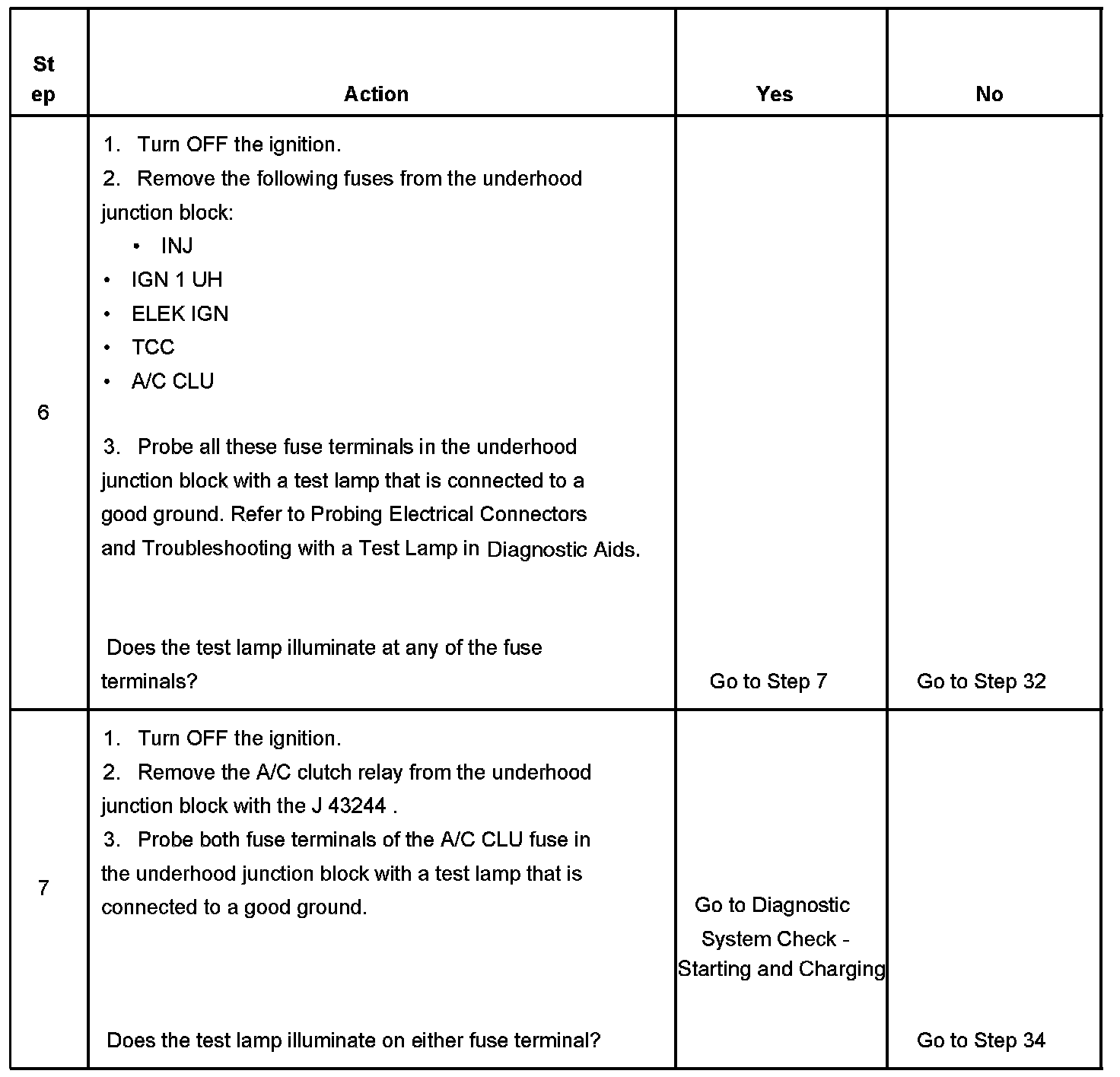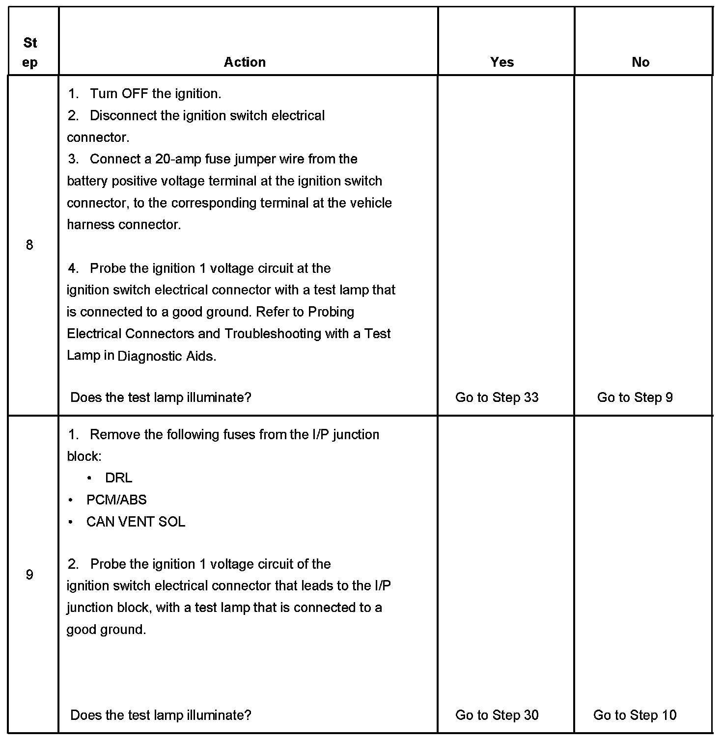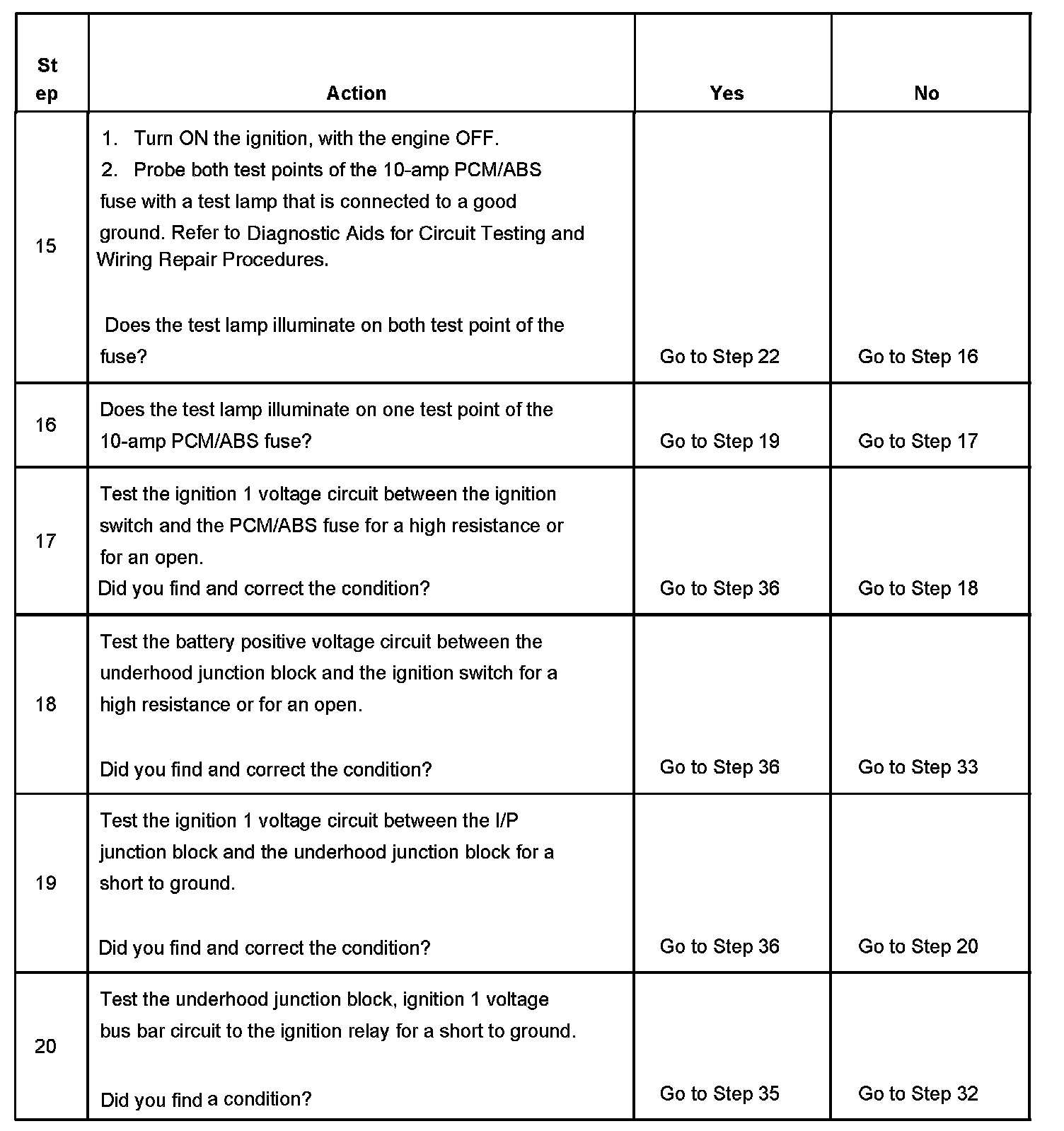 The ignition relay table assumes that the vehicle battery is fully charged. Refer to Battery Inspection/Test in Starting and Charging. Battery Inspection/Test