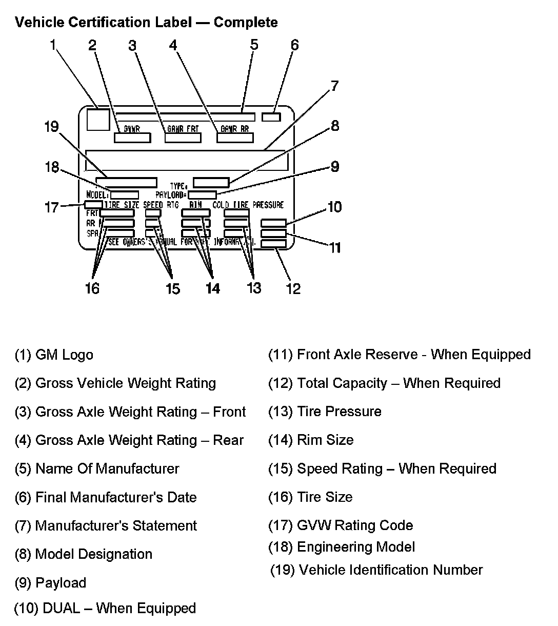 - The Gross Axle Weight Rating (GAWR) - Front and Rear