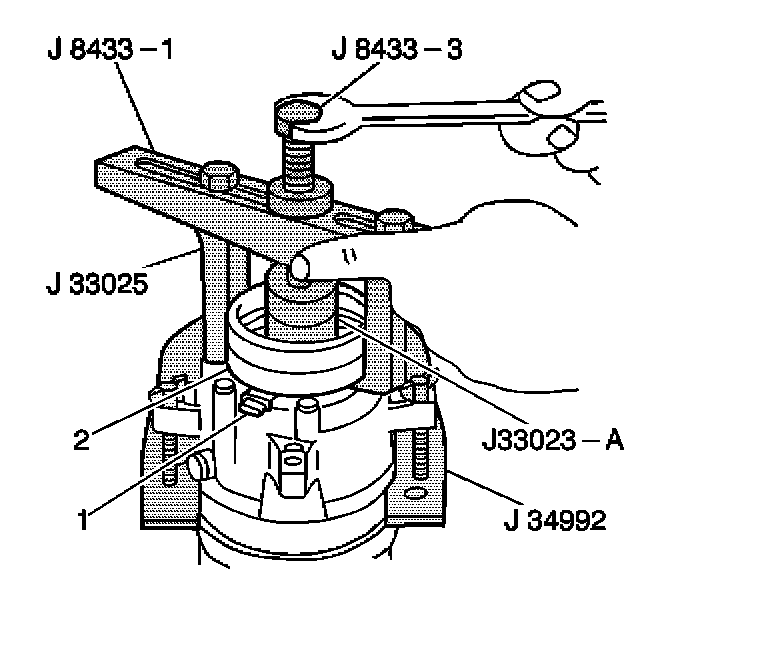 11. Install the J 8433-1 and the J 33025.