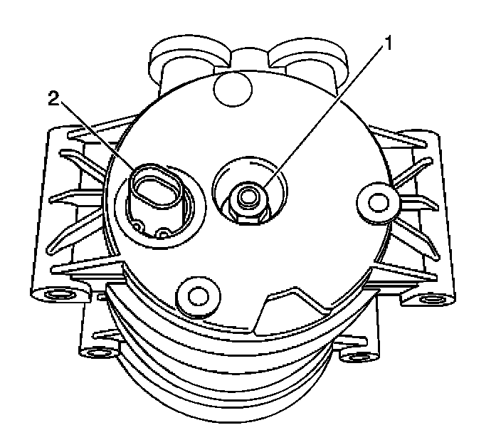9. Connect the electrical connector (2) to the A/C compressor high pressure cutoff switch.
