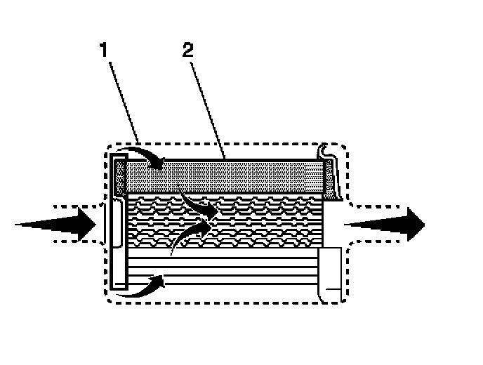 The fuel filter is located on the fuel feed pipe, between the fuel pump and the fuel injectors. The paper filter element (2) traps particles in the fuel that may damage the fuel injection system. The filter housing (1) is made to withstand maximum fuel system pressure, exposure to fuel additives, and changes in temperature.