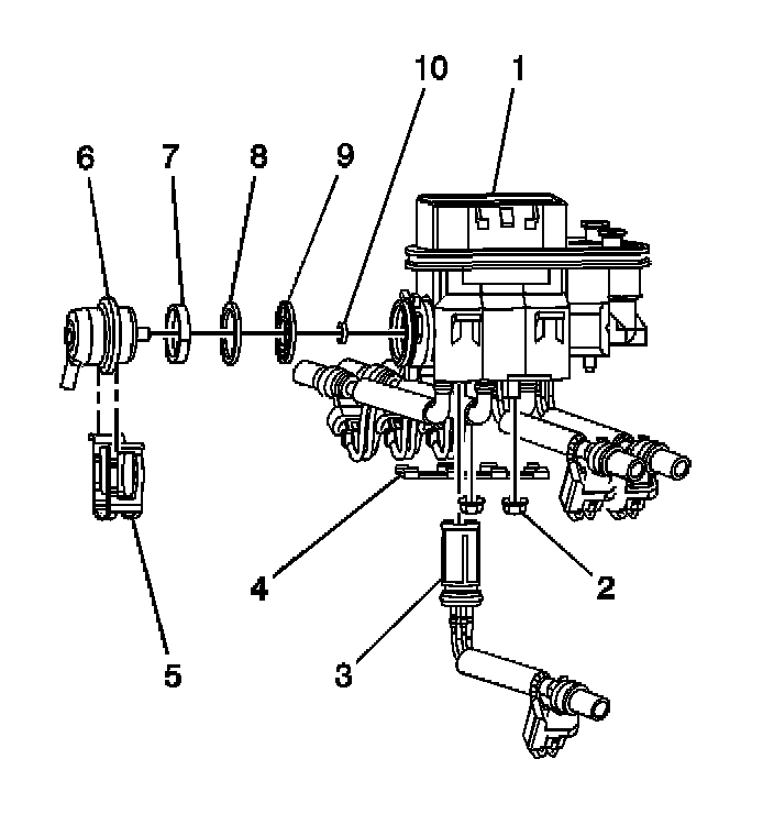 The fuel meter body assembly (1) attaches to the lower intake manifold. The fuel meter body assembly performs the following functions: