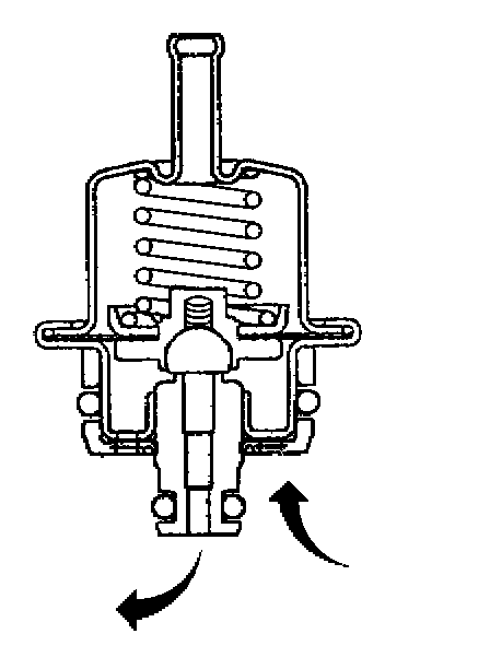 The fuel pressure regulator is a diaphragm relief valve. The diaphragm has fuel pressure on one side and regulator spring pressure and intake manifold vacuum on the other side. The fuel pressure regulator maintains a constant pressure differential across the fuel injectors under all operating conditions. The fuel pressure regulator compensates for engine load by increasing fuel pressure as the engine vacuum drops.