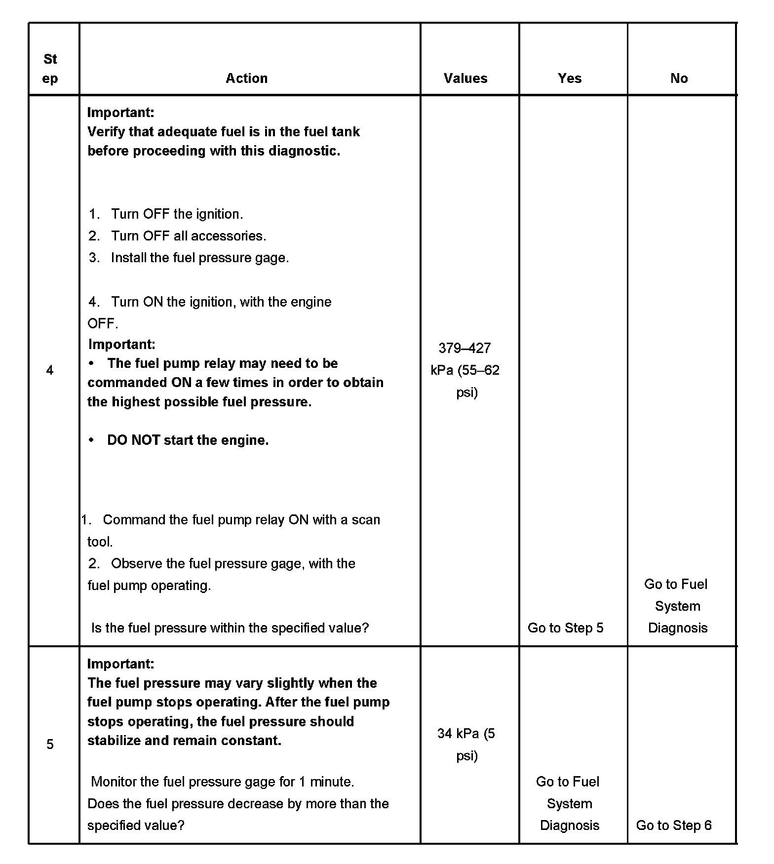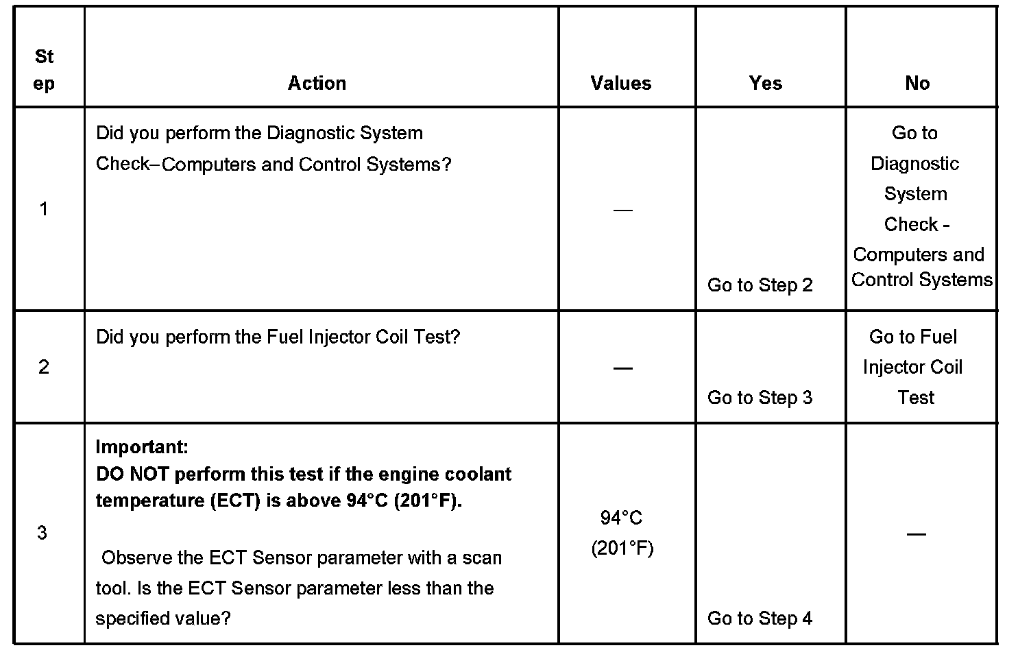 3. The engine coolant temperature (ECT) must be below the operating temperature in order to avoid irregular fuel pressure readings due to hot soak fuel boiling.