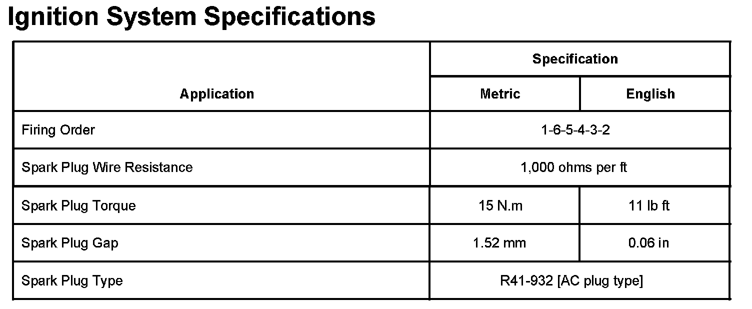 Ignition System Specifications: