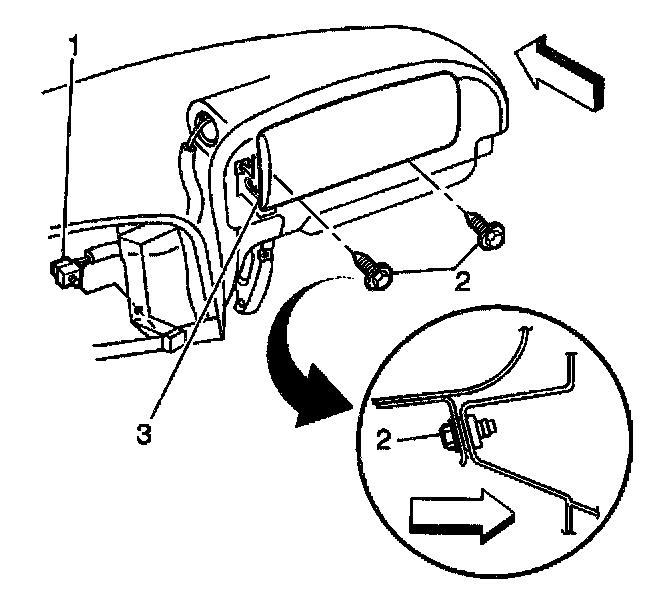 6. Remove the 2 bolts (2) that retain the inflatable restraint I/P module (3) to the I/P carrier.