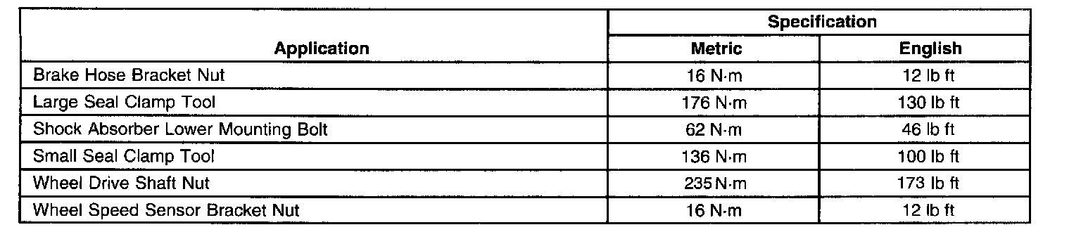 Fastener Tightening Specifications: