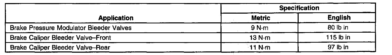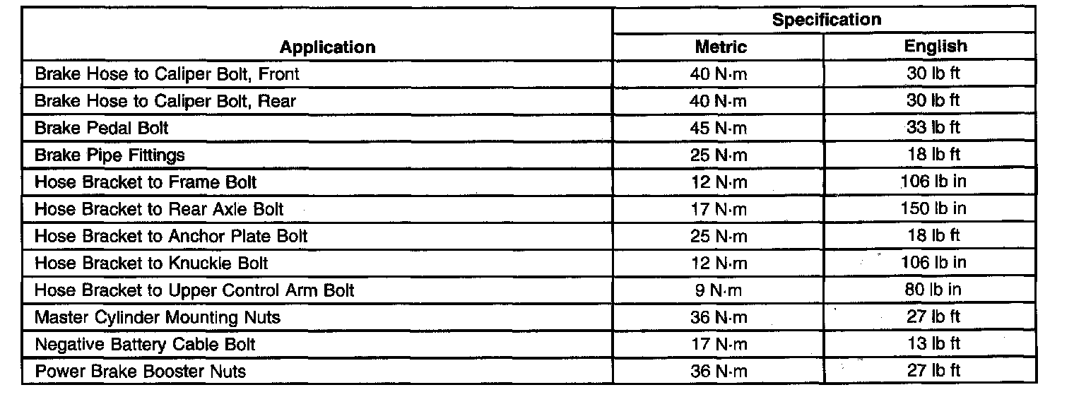 Brake System Specifications: