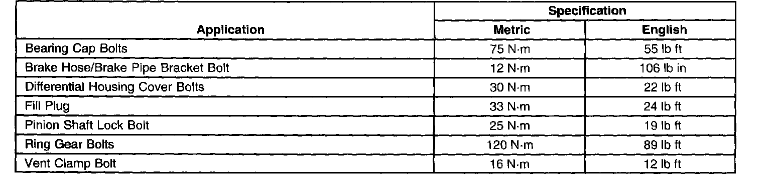 Fastener Tightening Specifications:
