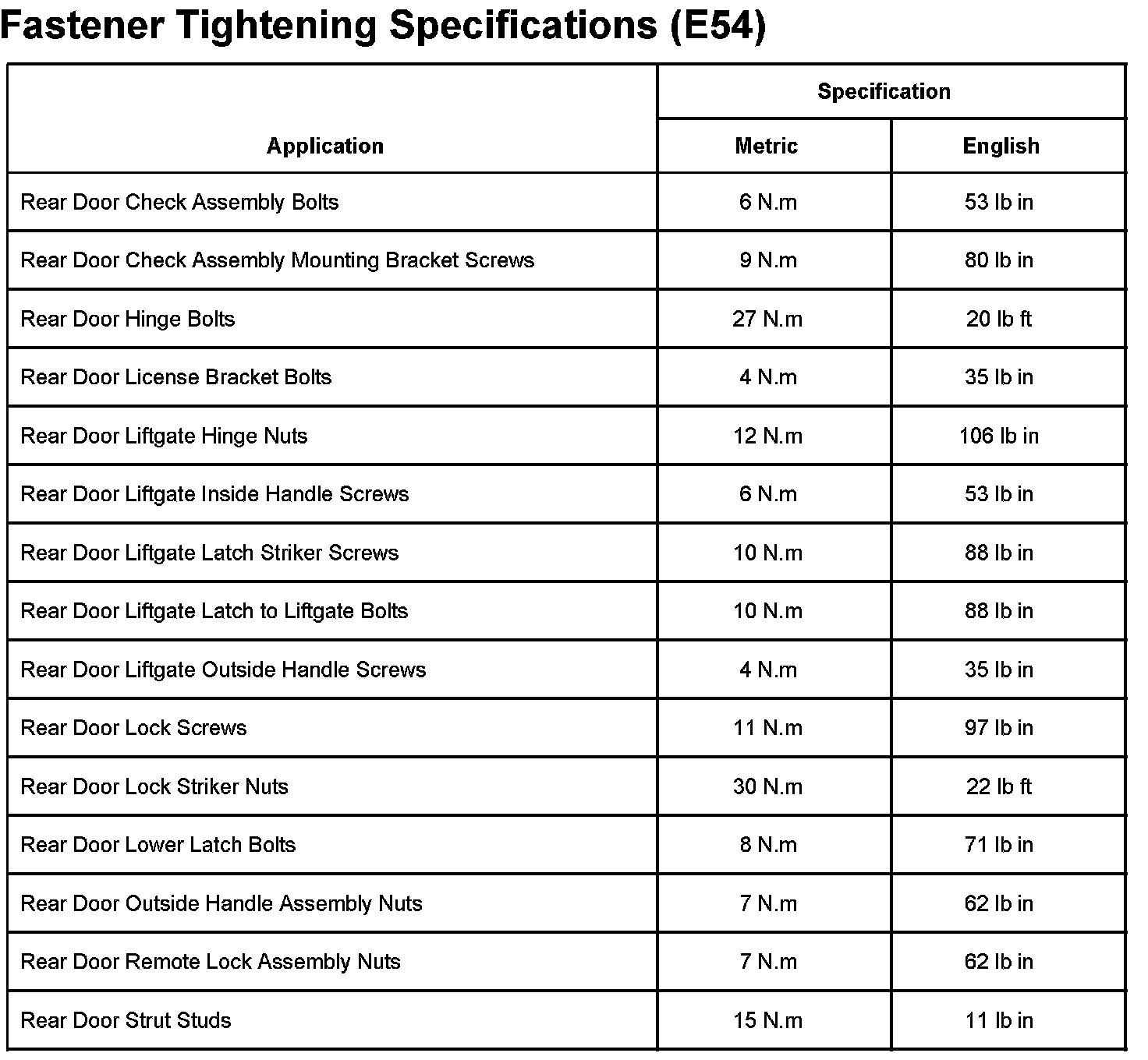 Fastener Tightening Specifications (With RPO Code E45)