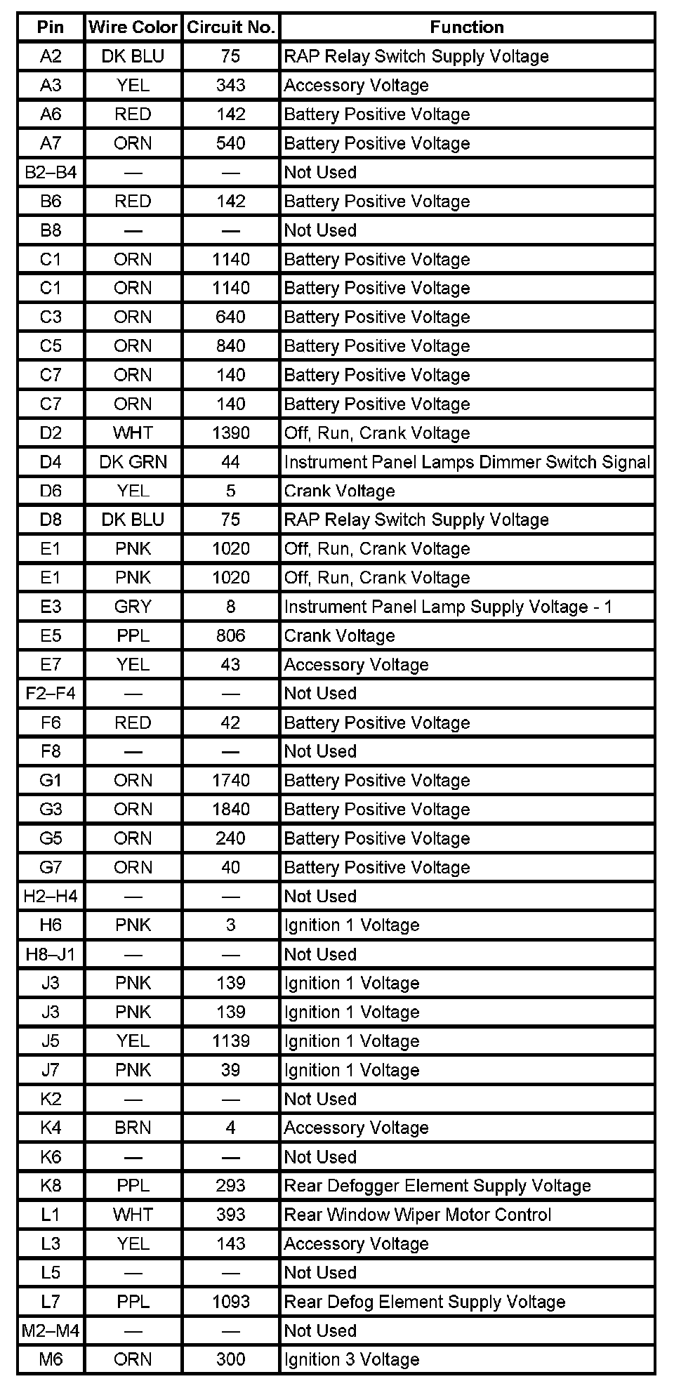 Fuse Block I/P (Rear View)