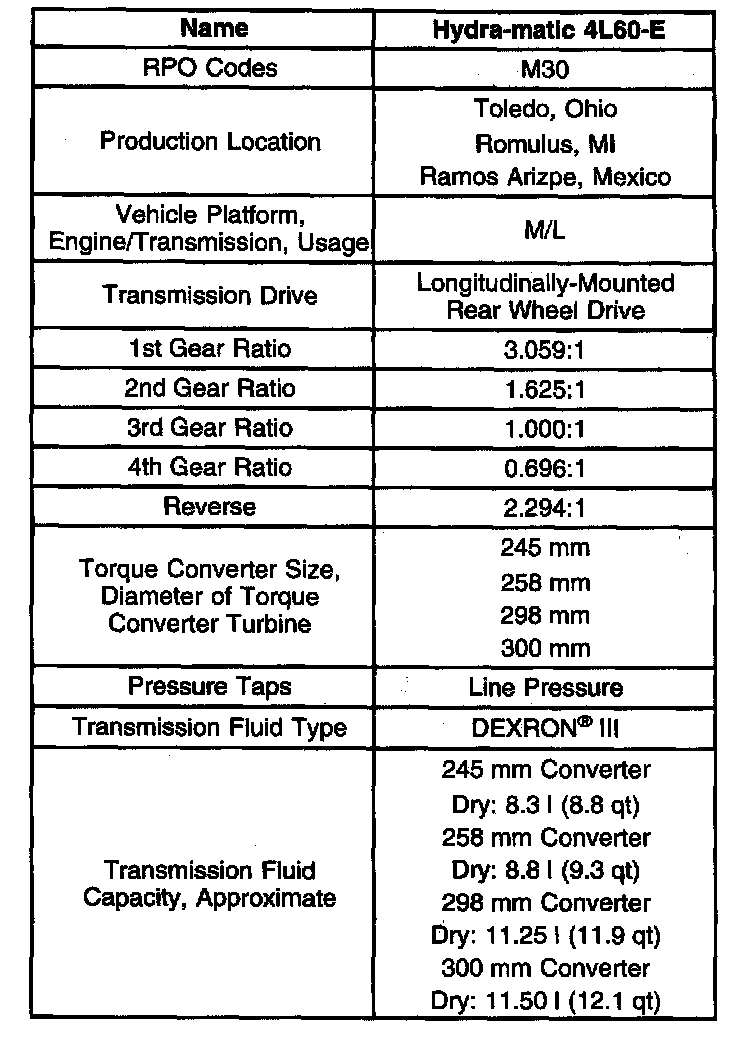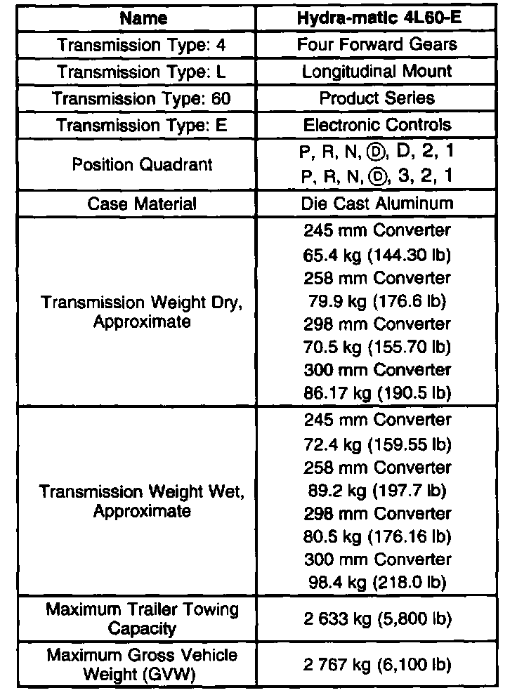 Transmission General Specifications