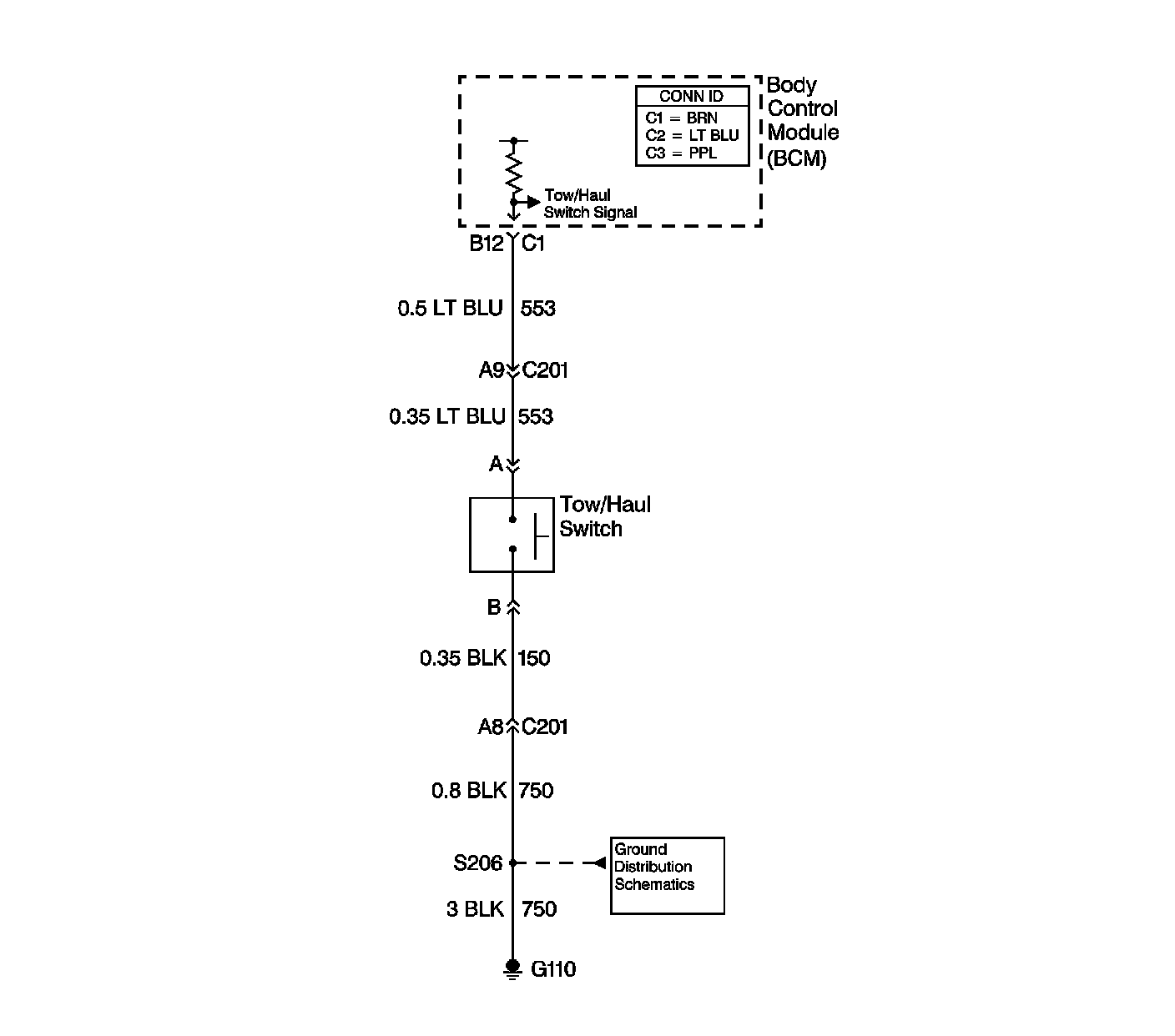 Tow/haul mode enables the operator to achieve enhanced shift performance when towing or hauling a load. When tow/haul mode is selected, the tow/haul switch input signal to the body control module (BCM) is momentarily toggled to zero volts. This signals the powertrain control module (PCM) to extend the length of time between upshifts and increase transmission line pressure. Cycling the tow/haul switch again, or cycling the ignition switch disables tow/haul mode and returns the transmission to a normal shift pattern.