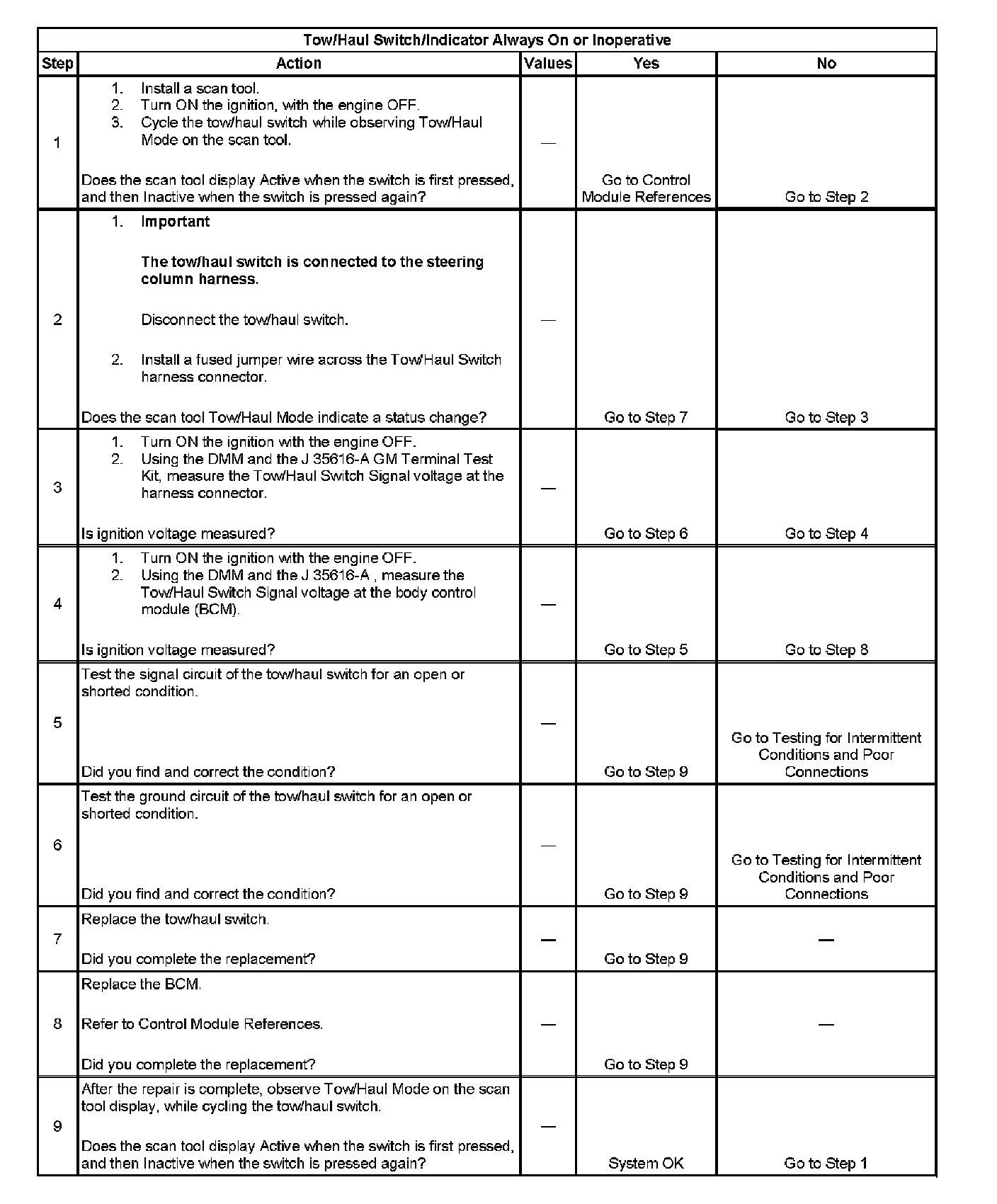 Tow/Haul Switch/Indicator Always On or Inoperative