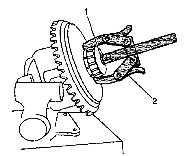 3. Remove the differential side bearings using the J 22888-20A and the J 8107-2.