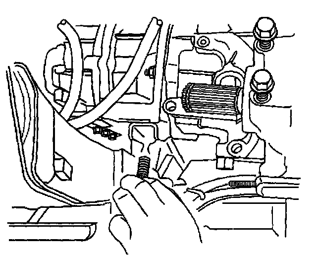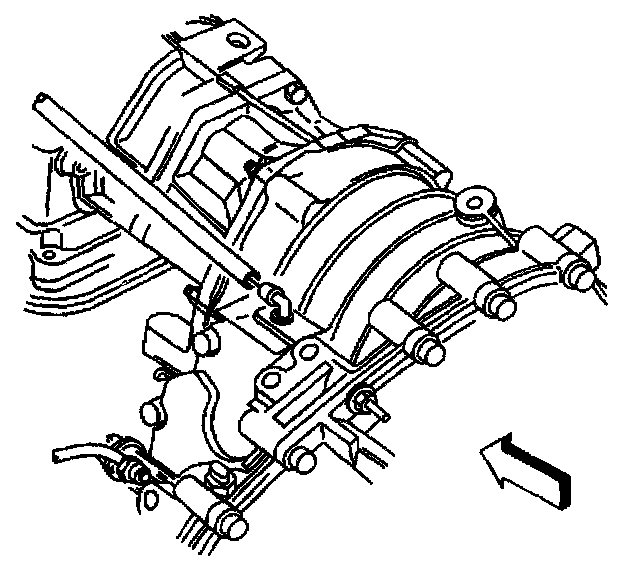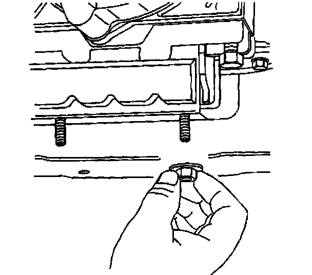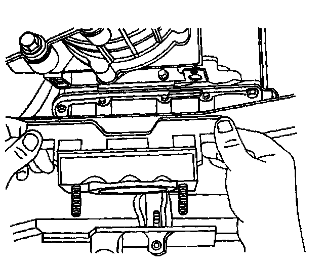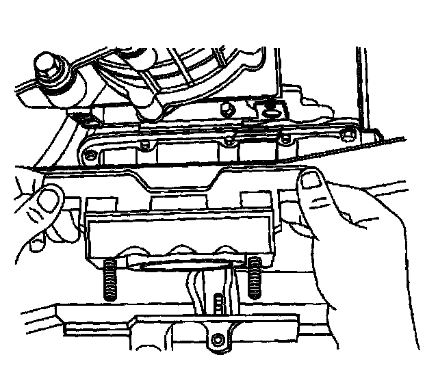 Important: The transmission mount must be replaced in it's original position to support the transmission. When reinstalling the transmission mount, it is not necessary reinstall the mounting nuts and bolts. The weight of the transmission and engine will hold the transmission mount in place until this service procedure is completed.