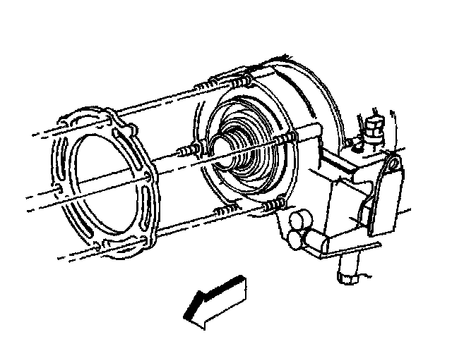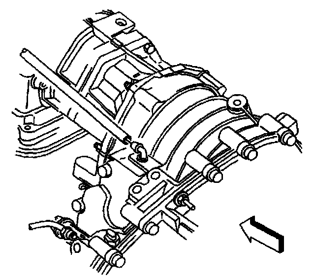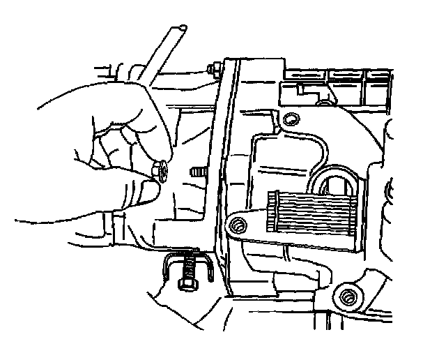 Important: To perform the following service procedure, the transmission mount must be removed to gain access to the bottom retaining nut of the transfer case. Do not support the transmission by the oil pan.