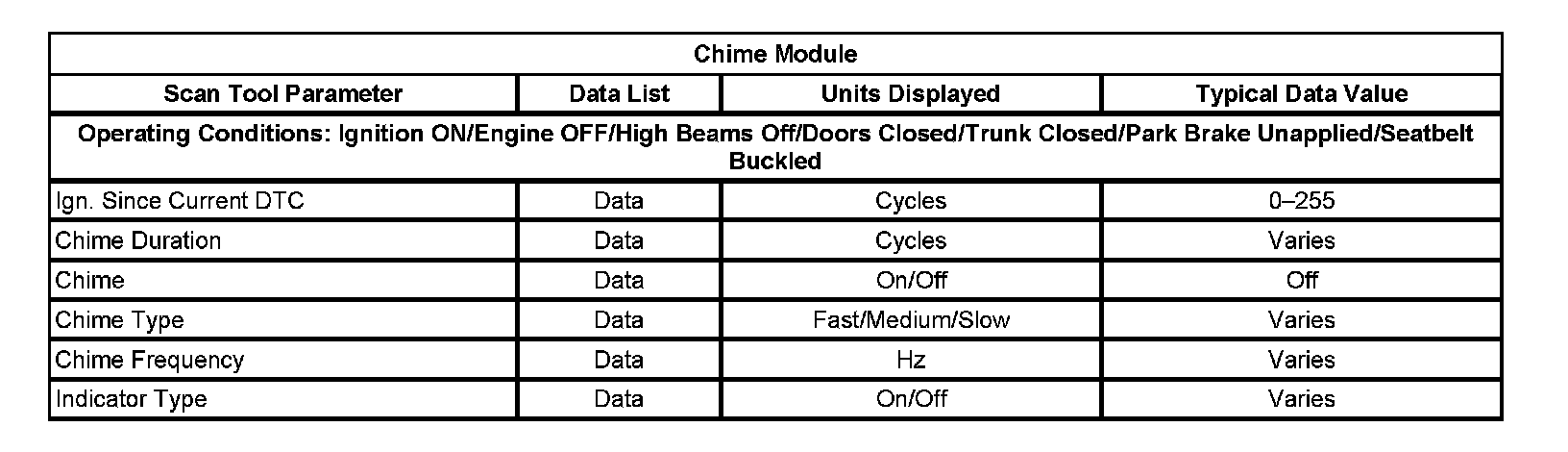 Scan Tool Data List - Chime Module