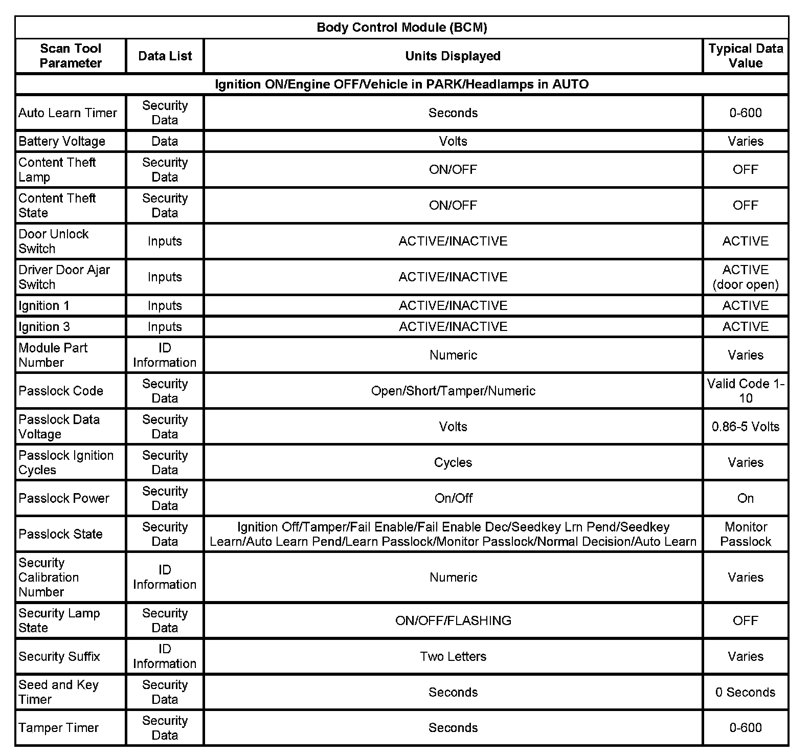 Scan Tool Data List - Antitheft System