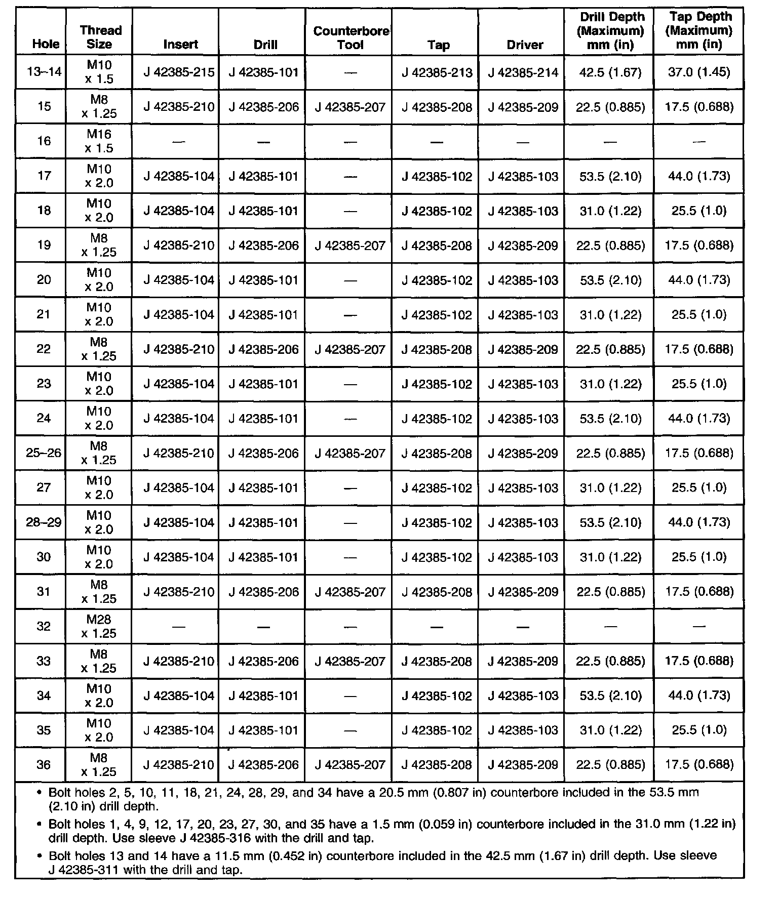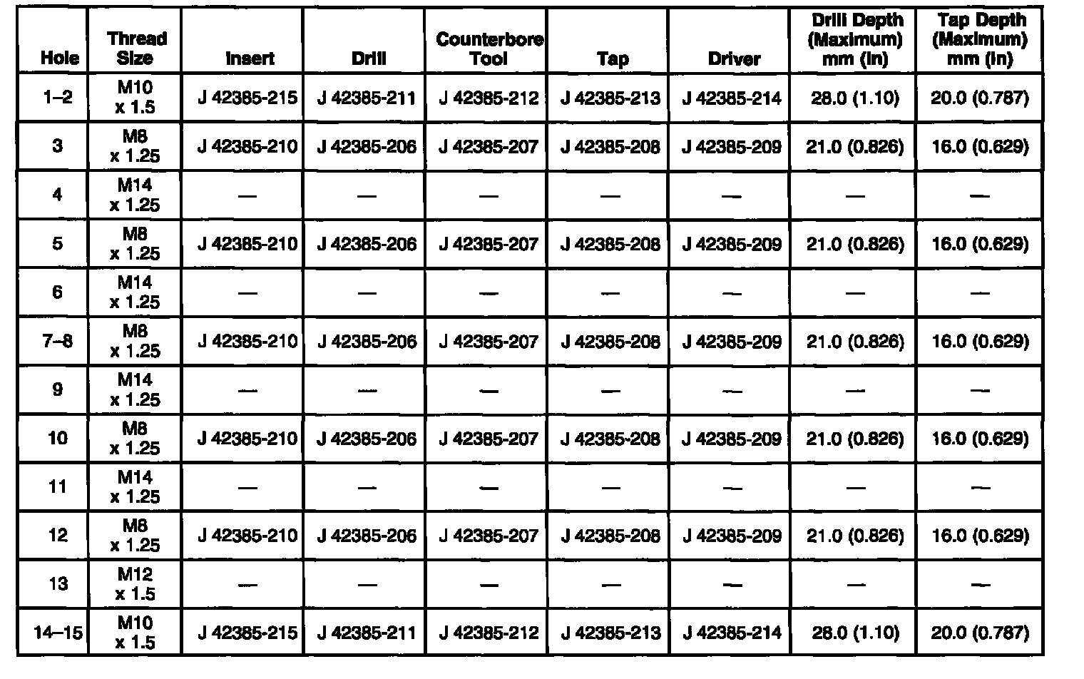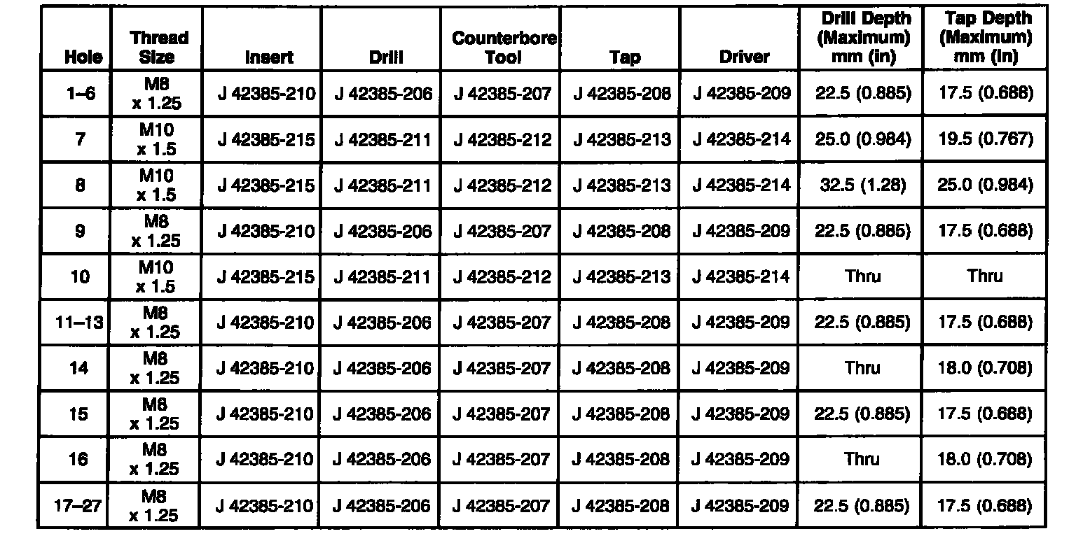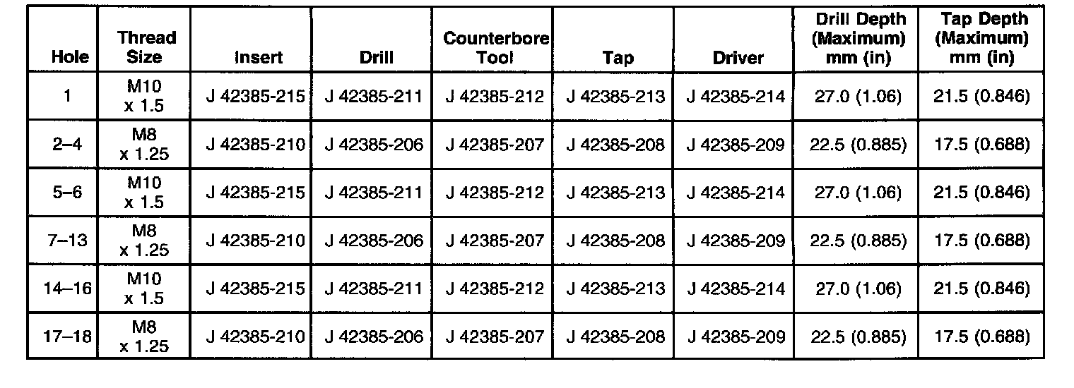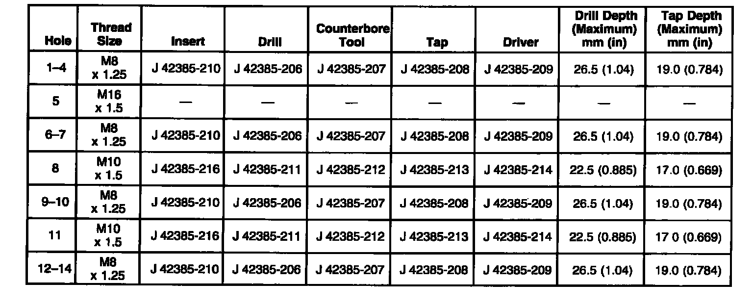 Thread Repair SpecificationsEngine Block - Front View