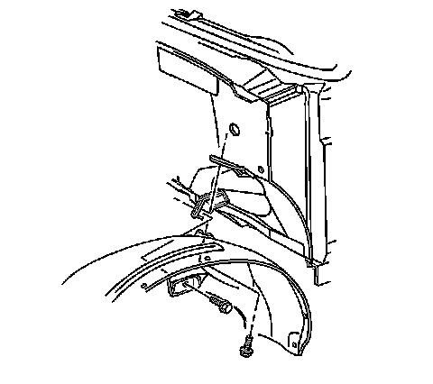 5. Install the bolts that retain the wheelhouse panel to the radiator support.