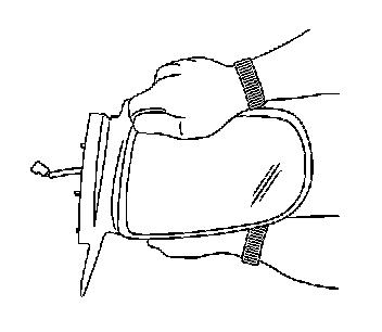 2. Remove the damaged mirror back and glass sub-assembly from the mirror housing by completing the following steps:
