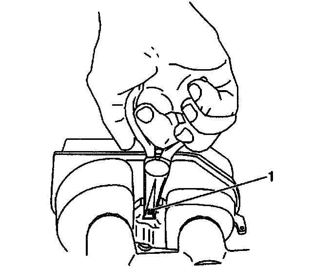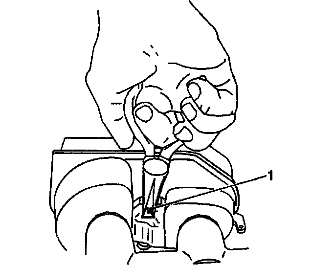 2. Remove the fluid level sensor (1). Use a needle nose pliers in order to compress the locking tabs at the opposite side of the master cylinder.