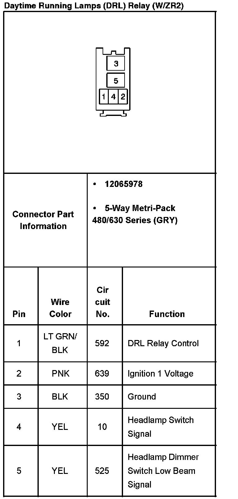 Daytime Running Lamps (DRL) Relay (With RPO Code ZR2):