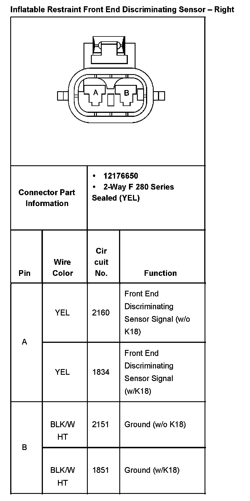 Inflatable Restraint Front End Discriminating Sensor - Right: