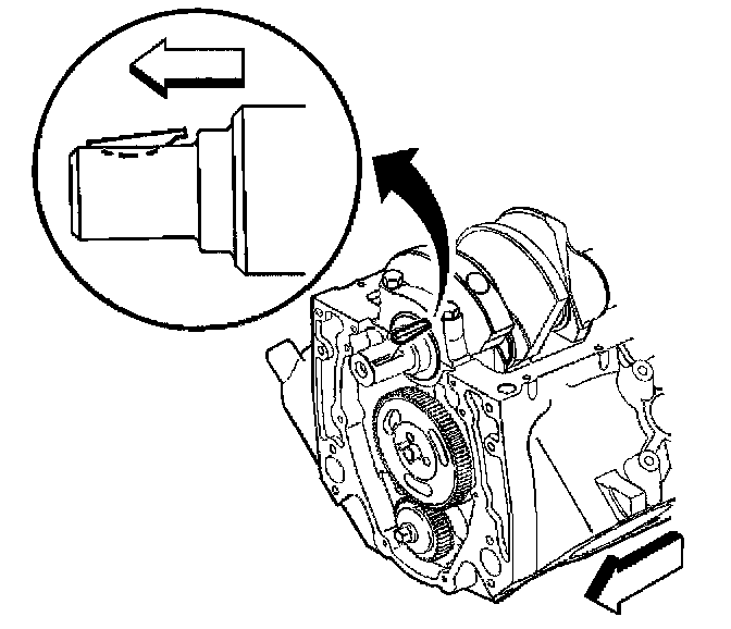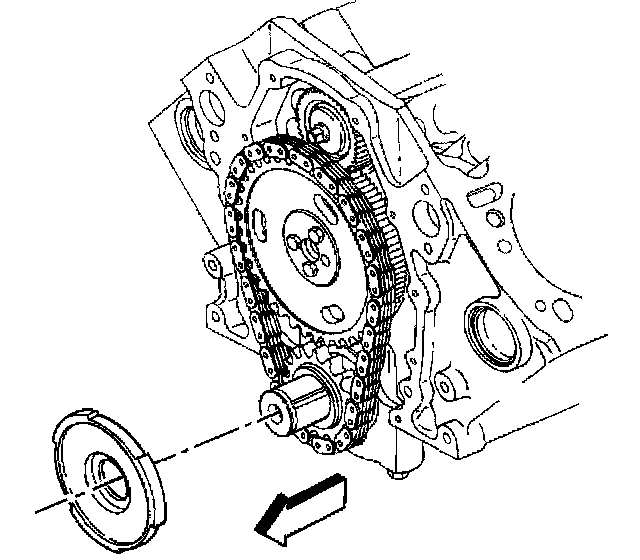 Important: Do not use a hammer to install the camshaft sprocket onto the camshaft. To do so may dislodge the expansion cup plug (camshaft rear bearing hole).