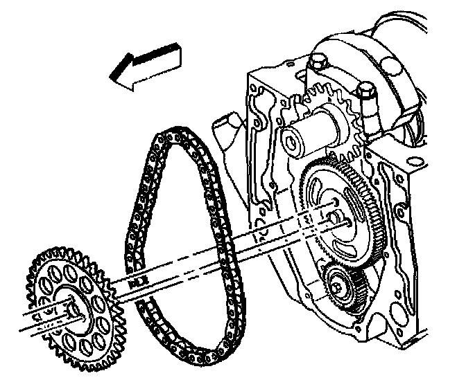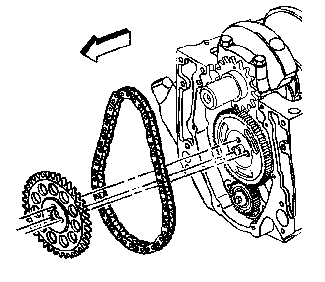 Notice: Align the timing marks before removing the timing chain. If it is necessary to turn either the camshaft or the crankshaft with the timing chain removed, loosen or remove the valve rocker arms. Turning either the crankshaft or camshaft with the timing chain removed may cause the pistons to contact the valves, resulting in damage.