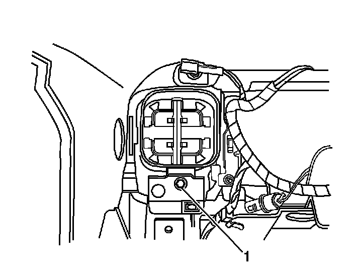 2. Install the screw (1) securing the air outlet assembly to the instrument panel carrier.