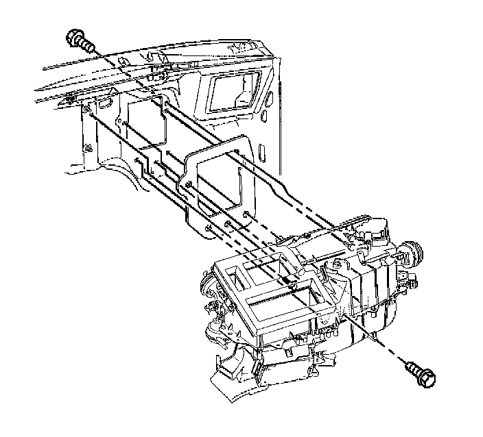 4. Remove the heat/vent module mounting bolt through the blower motor resistor or service access cover opening.
