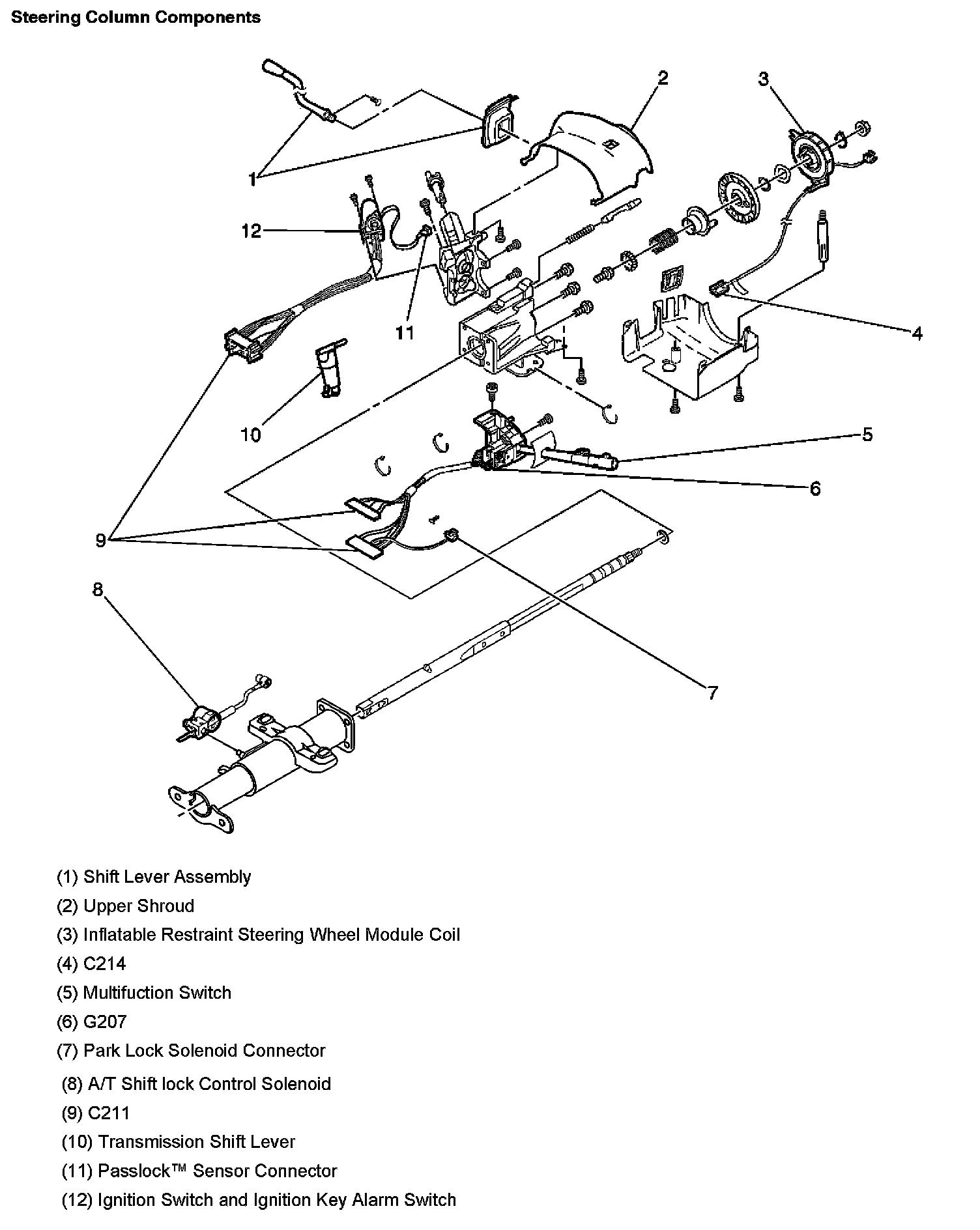 Steering Column Components: