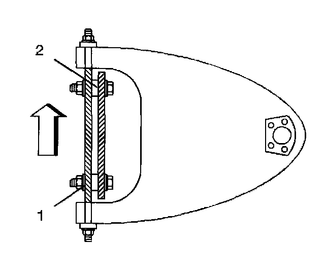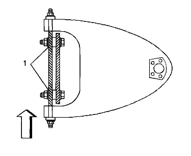 5. A normal shim pack will leave at least two threads of the bolt exposed beyond the nut (1). The difference between the front shim pack and the rear shim pack must not exceed 10 mm (0.40 inch). If you cannot meet these requirements, check for damage to the control arms and to related parts.