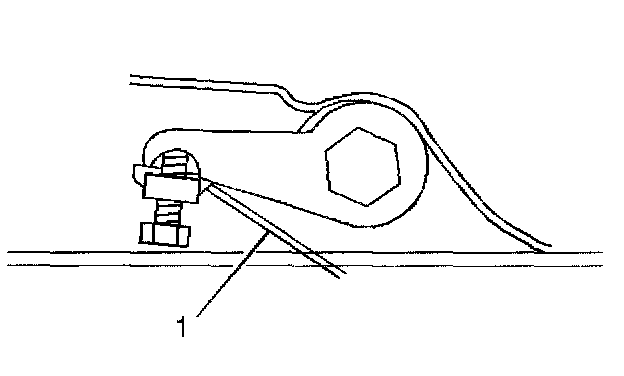 1. For vehicles equipped with a torsion bar suspension, turn the bolt (1) that contacts the torsion arm as needed. One revolution of the bolt (1) into the nut, increases the Z height by approximately 6.0 mm (0.2 inch).