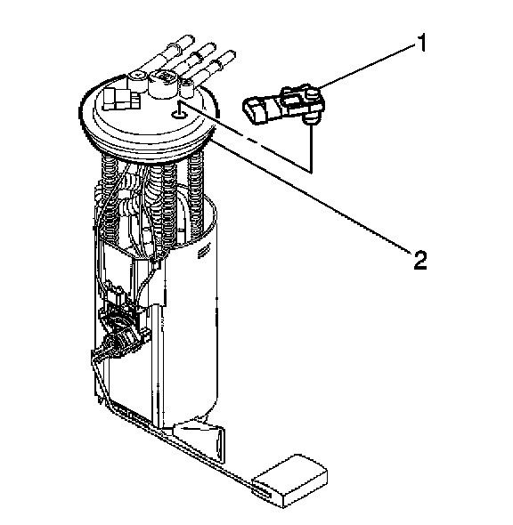6. Remove the fuel tank pressure sensor (1) from fuel sender assembly (2).