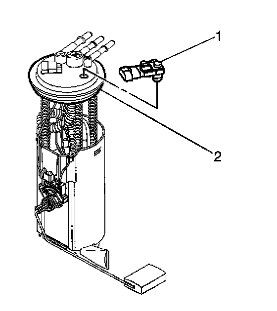 1. Install the fuel tank pressure sensor (1) on the fuel sender assembly (2).
