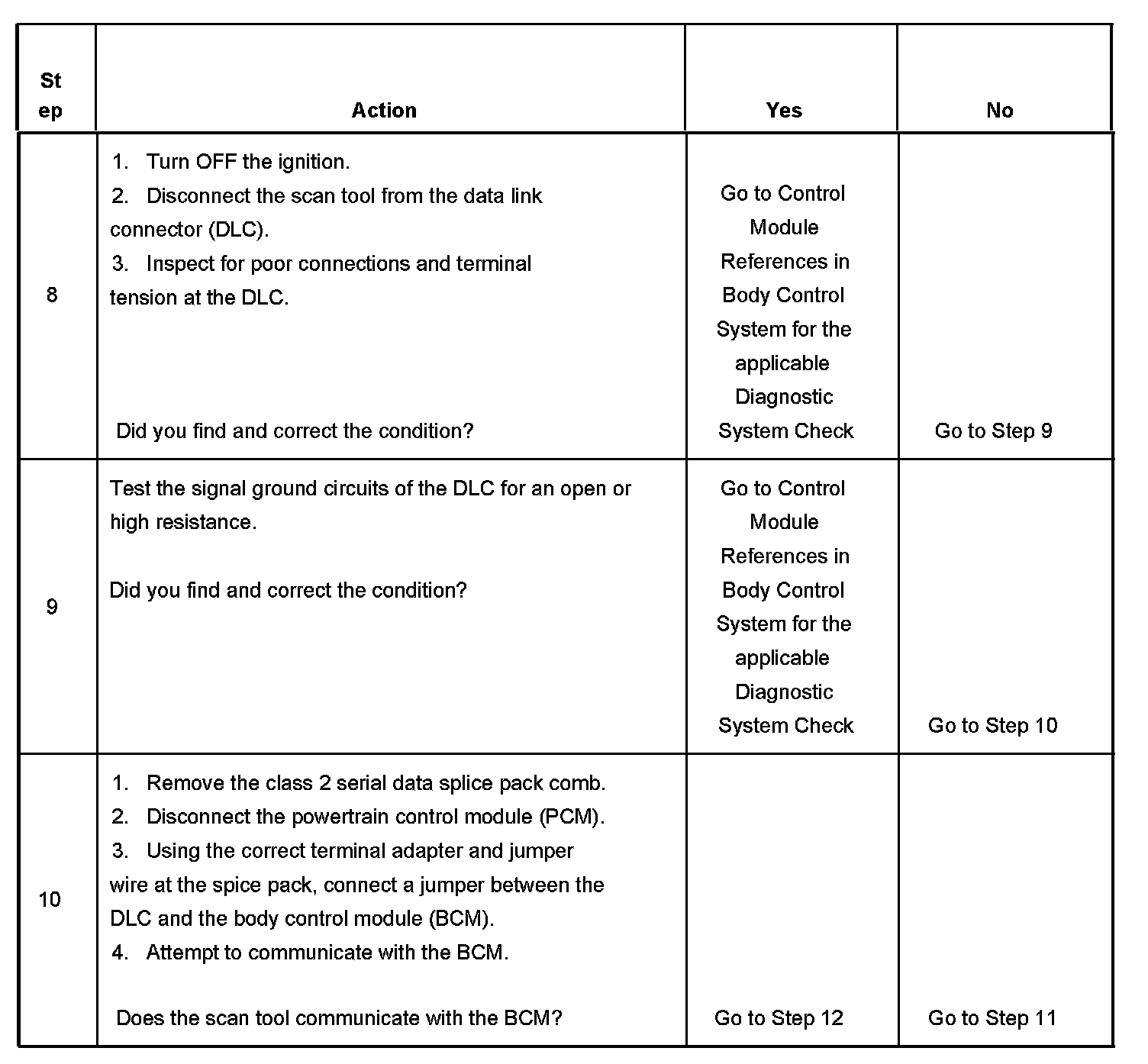 10. Normal class 2 serial data communication cannot take place until the body control module (BCM) sends the appropriate power mode message. If the BCM does not send a wake-up message, other modules on the class 2 serial data circuit may not communicate.