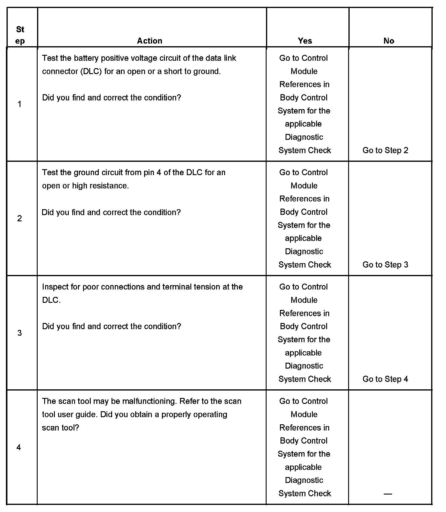 4. If the battery positive voltage and ground circuits of the DLC are functioning properly. The malfunction must be due to the scan tool.