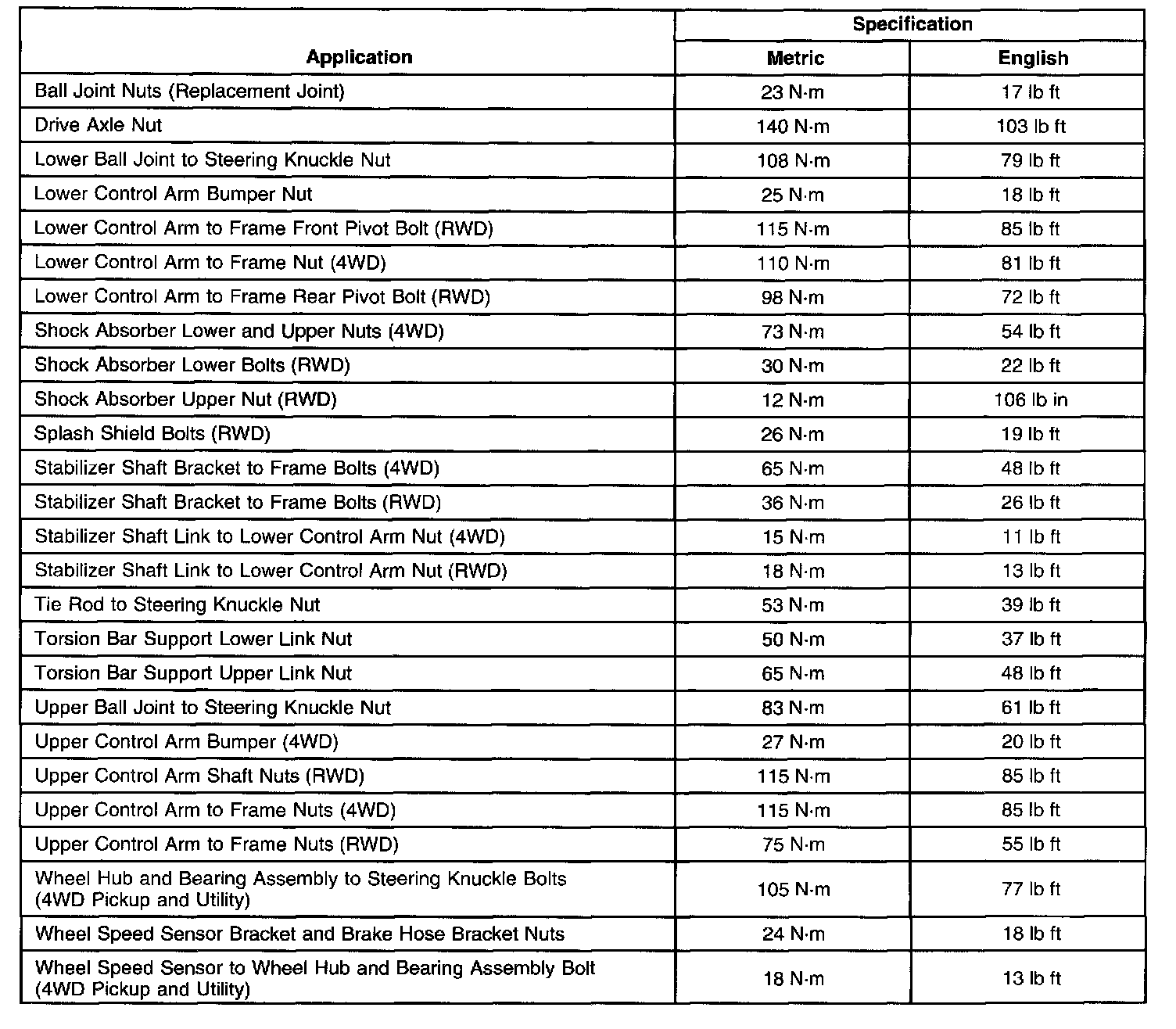 Fastener Tightening Specifications: